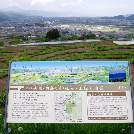 棚田1枚1枚にオーナーがいるらしい。1番は東京の中学校!課外活動的なやつかな?水が入った田植え前の田んぼはいいよねー。姨捨の棚田。