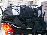 背負ってみて身体にフィットしなかったらネットやロープでリアシートにくくりつけるといい。お土産を買って帰りにバッグがパンパンになることはよくあること。取りつけるわずらわしさよりも安全第一で。汎用的なネットやロープは常に持っていると役に立つ。