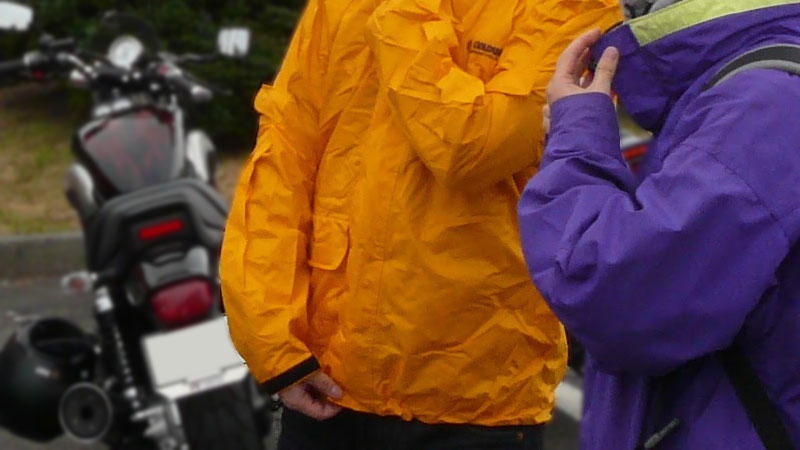 標高が高い場所や天気の急変など予期せず寒さに襲われることもある。そんなときはレインウェア(雨具)を防寒に着るのもいい。